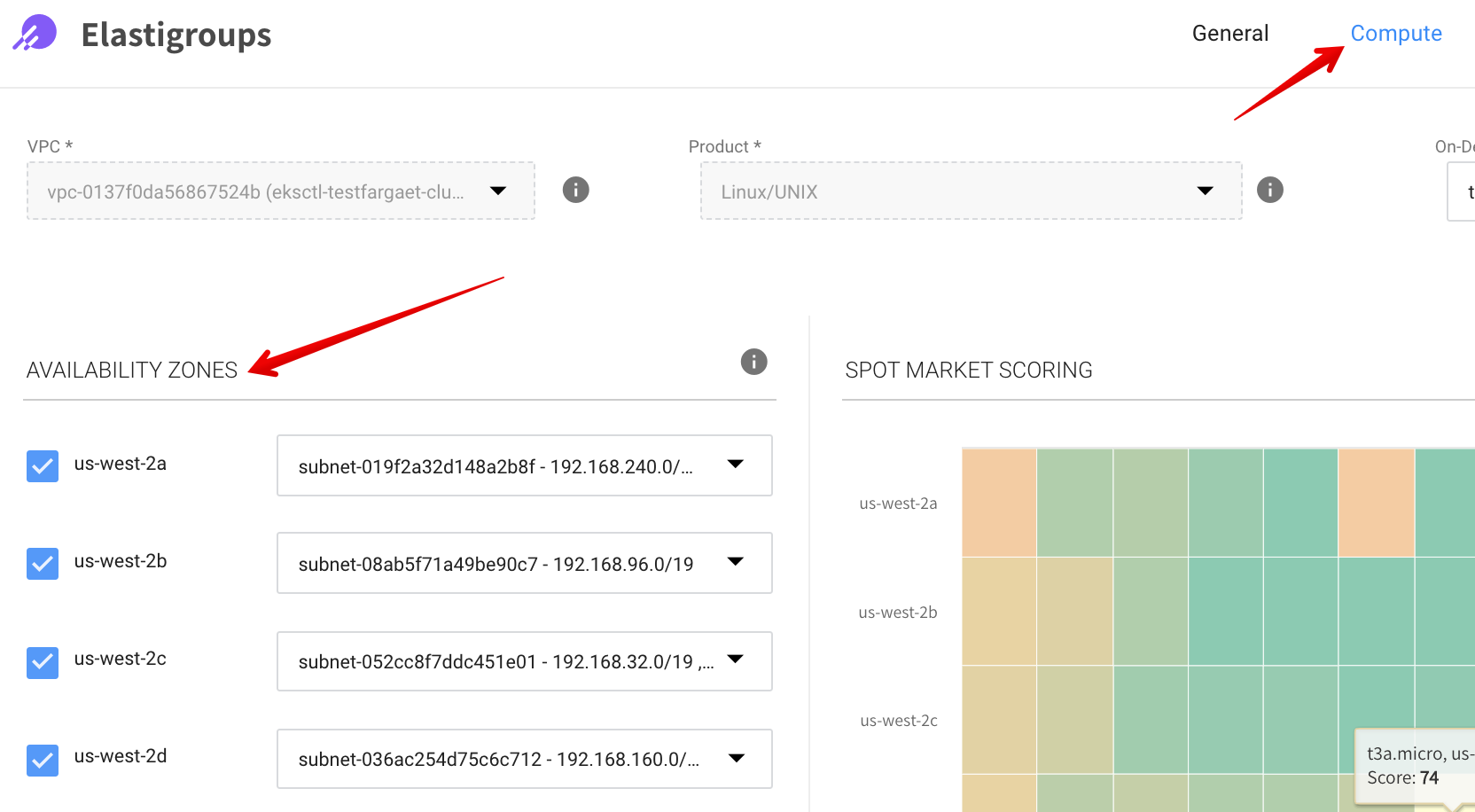To diversify the spot markets available for the Elastigroup, it is highly recommended to choose all the AZs listed for the region.