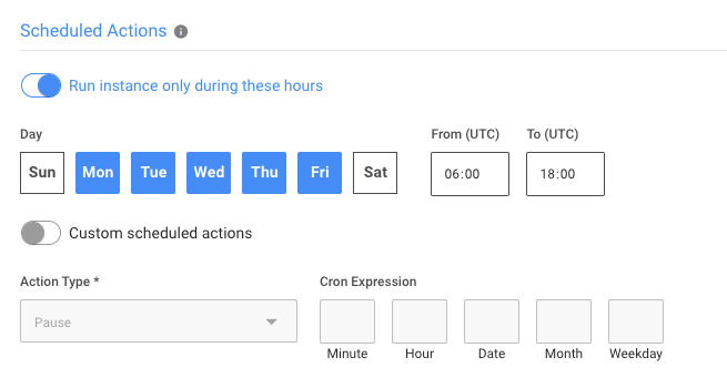 • You can choose one of two options – predetermined Running hours, or custom scheduled actions.