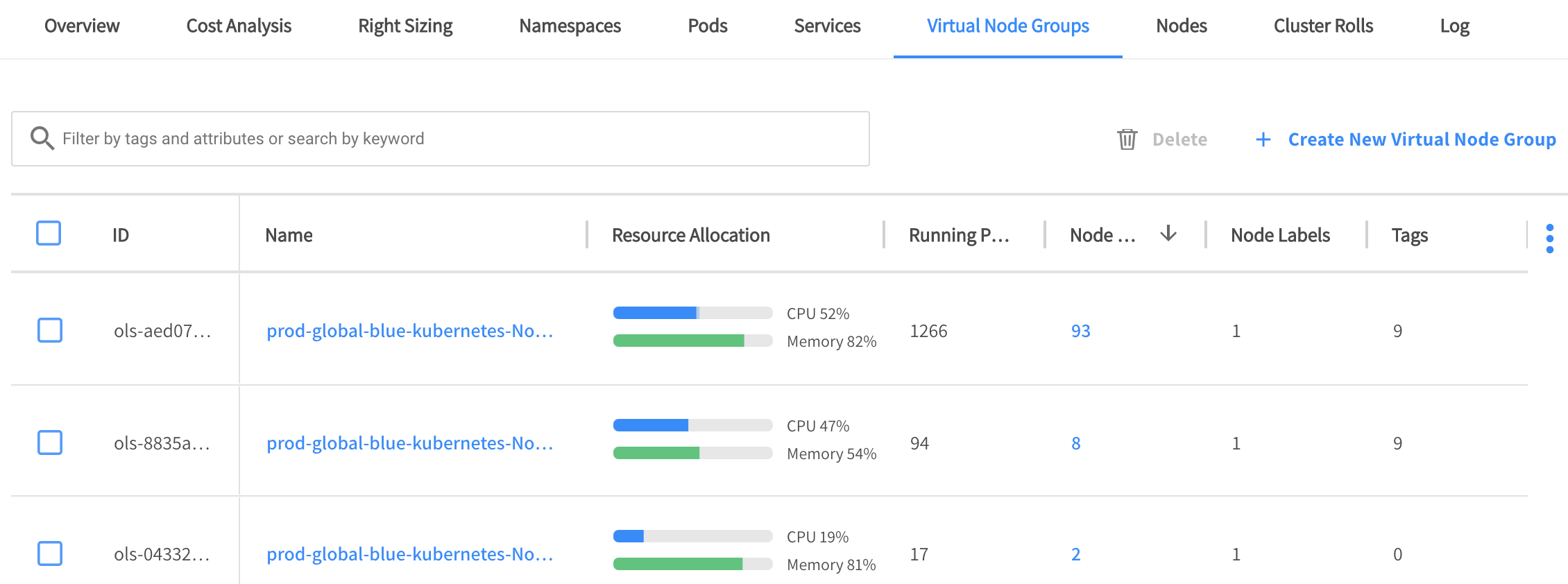 - To delete a VNG, go to the Virtual Node Groups tab.